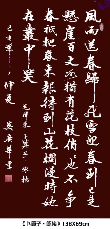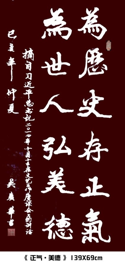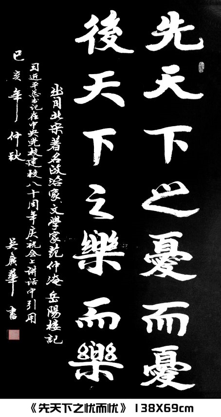 吴广华 男,当代艺术工程院士,研究员职称,中共党员,国家特级书法师,中书协会员、“全国高层次艺术专业人才”、世界文学艺术家联合总会会员、俄罗斯艺术科学院荣誉院士,国际文联书画委员会委员,中国国宾礼特聘书画艺术家,国家非物质文化艺术传承人,中华传统文化发展基金会名誉主席、中国国画院书法研究院院长,中国传统文化研究会名誉会长等。曾任江苏省灌南县县委副书记、县政协主席、县人大常委会主任兼党组书记等职。
